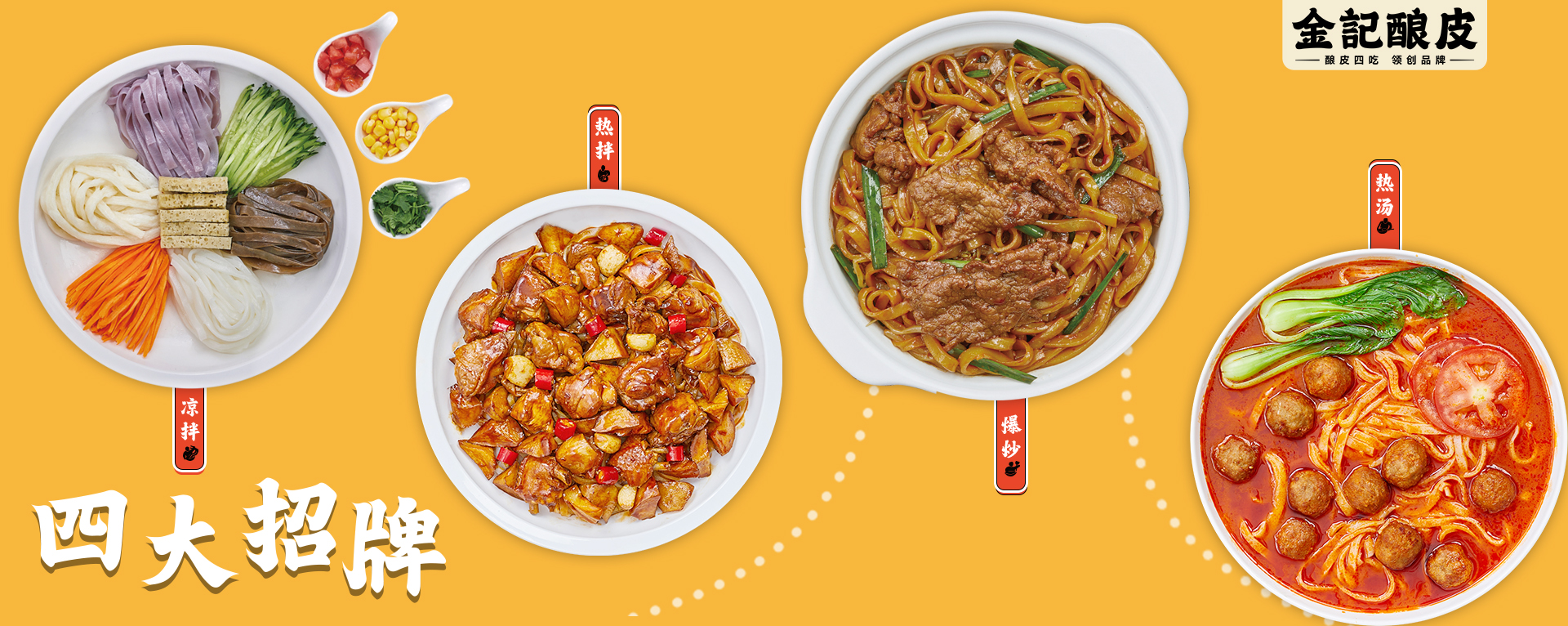 金記釀皮是以釀皮為核心產品的中式快餐連鎖品牌,店面采用釀皮現蒸的做法,提升了行業釀皮制作的新標準,解決傳統前店后廠的重模式,形成了以釀皮四吃 (涼拌、熱拌、爆炒、熱湯)為核心的差異化定類,突破品類季節性的限制,金記釀皮致力于打造全國快餐連鎖代表品牌。